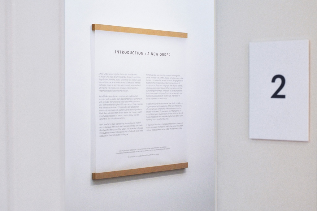 Karla Black和Kishio Suga在10月22日至2月19日期間在蘇格蘭國家現代藝術畫廊現代一號展出的作品。 藝術家們在展覽概念之前沒有意識到彼此的作品,他們在世界的另一邊工作,他們被描述為在使用日常材料的過程中團結一致,創造出對特定空間作出反應的雕塑作品。 這種共性為格拉斯哥O街設計的展覽的視覺形象提供了信息,并將字標,邀請,橫幅,標牌和海報聯系在一起。